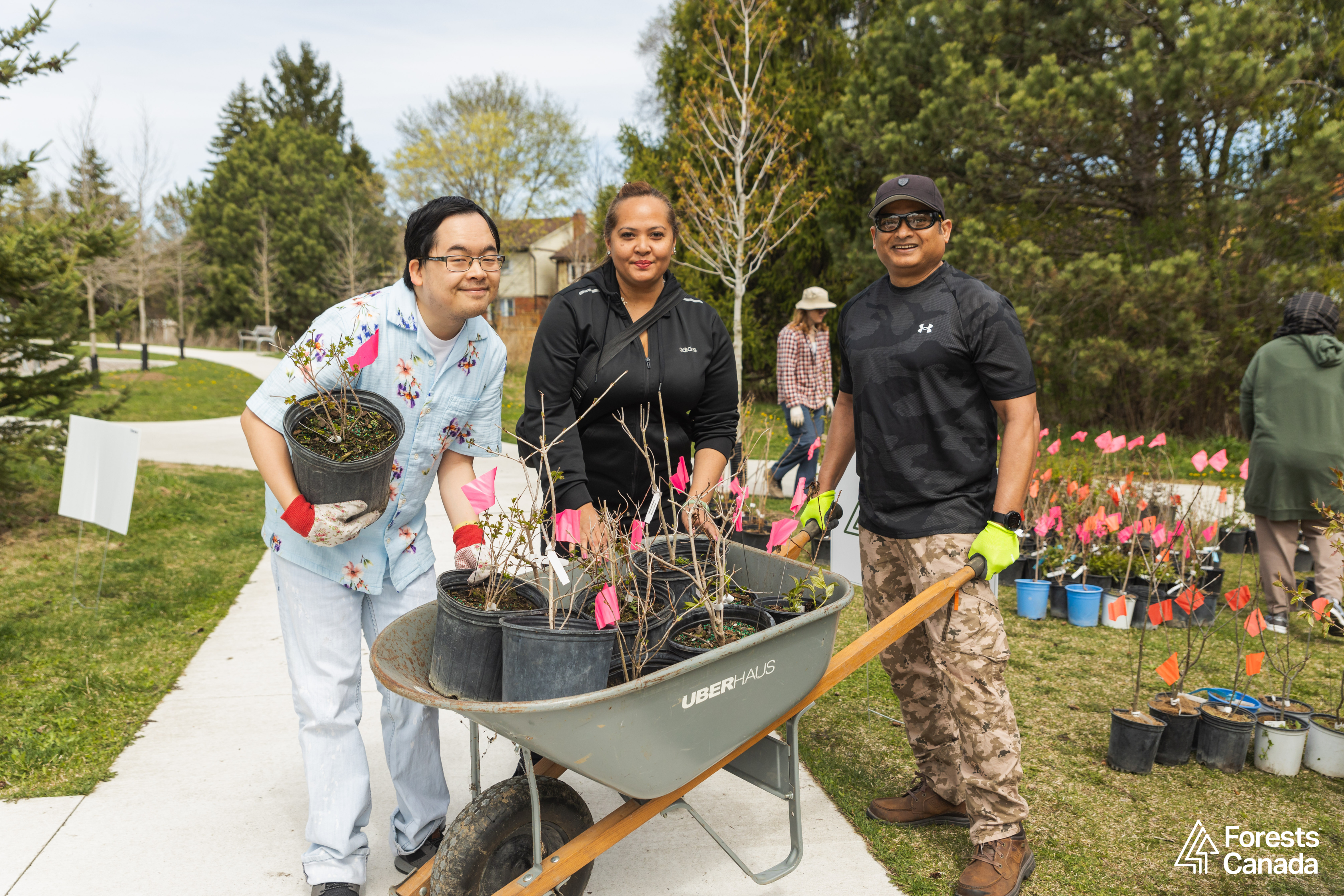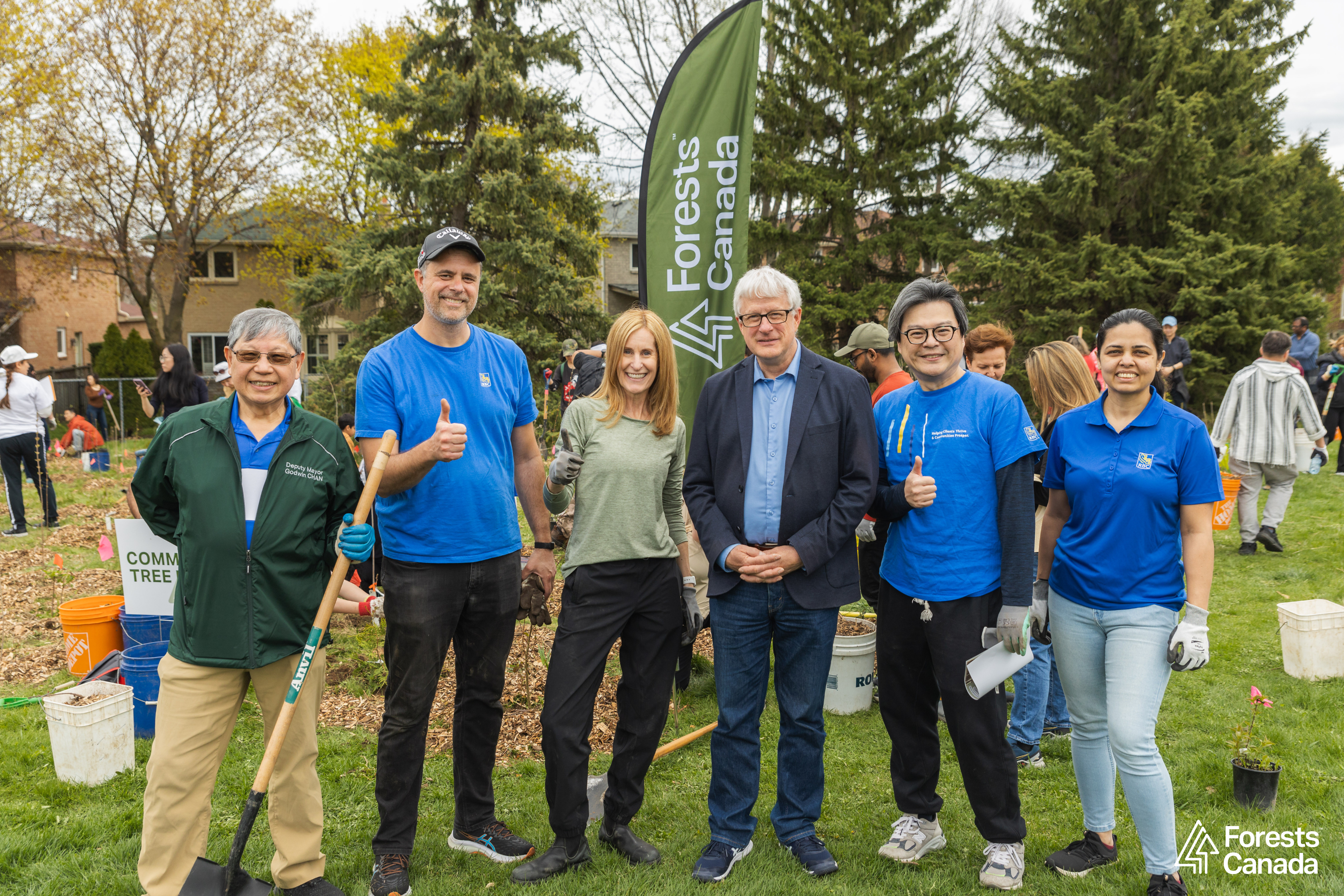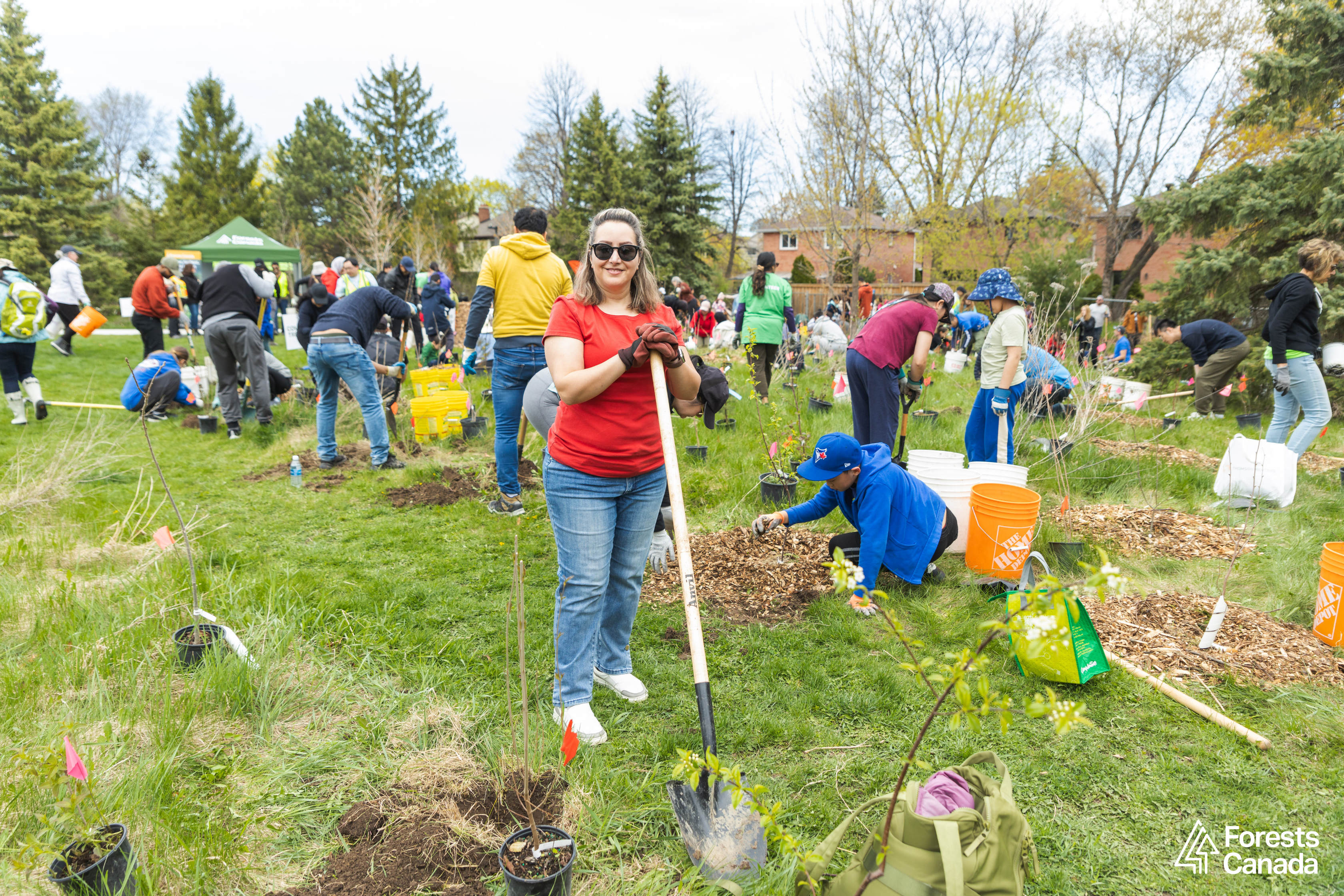 On May 4, 2025, over 150 volunteers from across the Greater Toronto Area and beyond gathered to plant 500 native trees and shrubs at Carrville Park in Richmond Hill, adding to the City’s growing urban forest. This Community Tree Plant event was a Forests Canada collaboration with LEAF, the City of Richmond Hill and York Region, and was made possible by the generous support of the RBC Foundation.