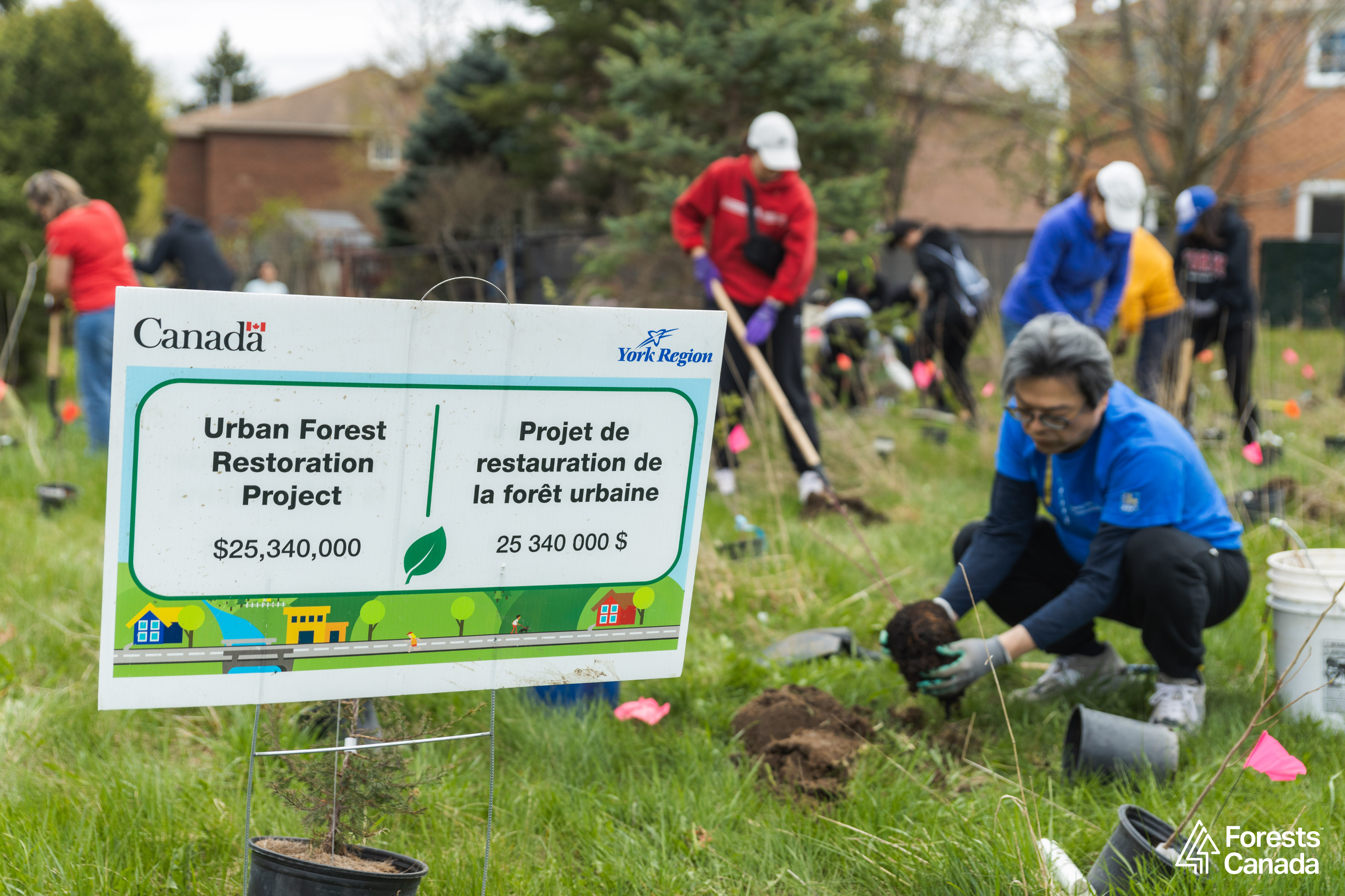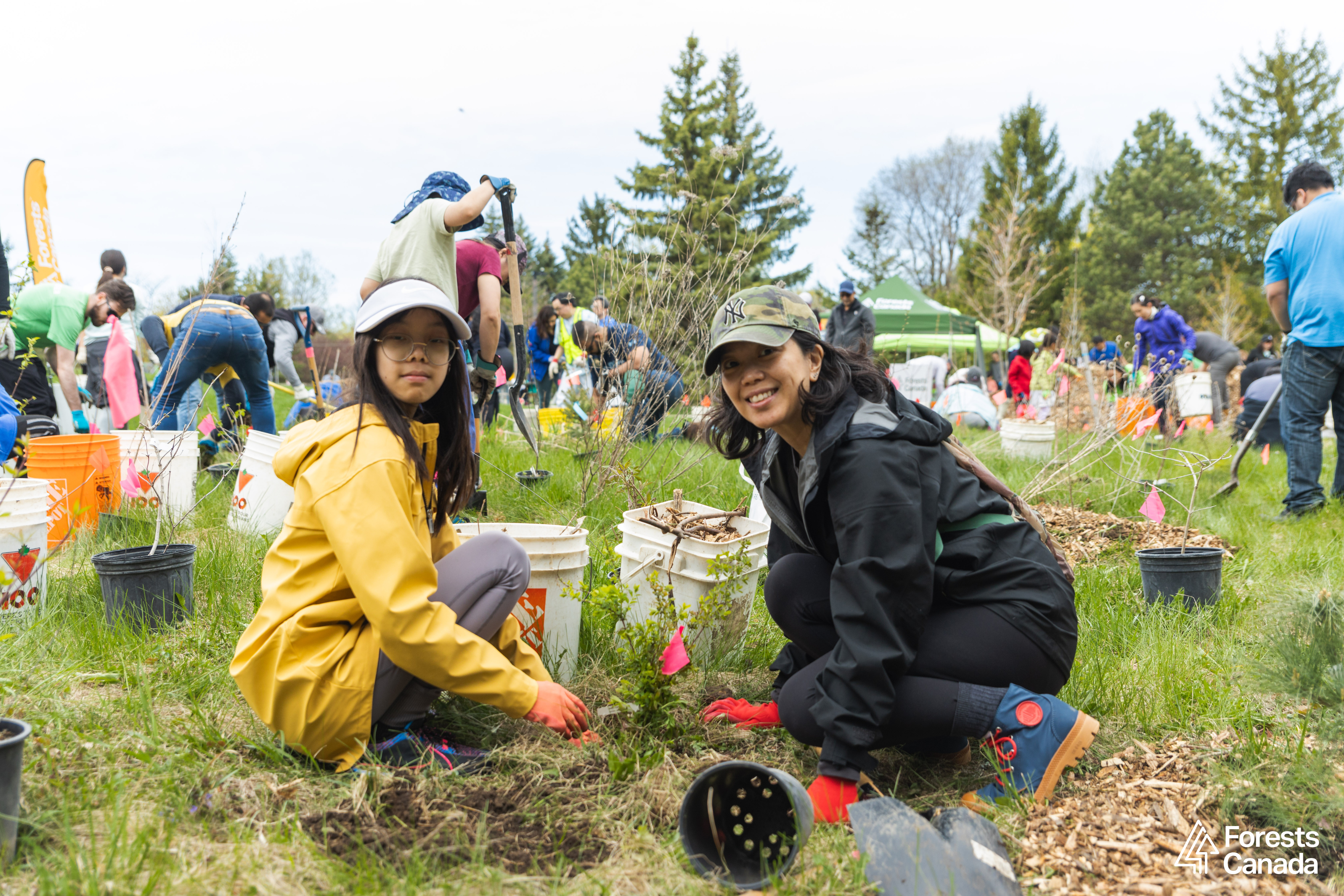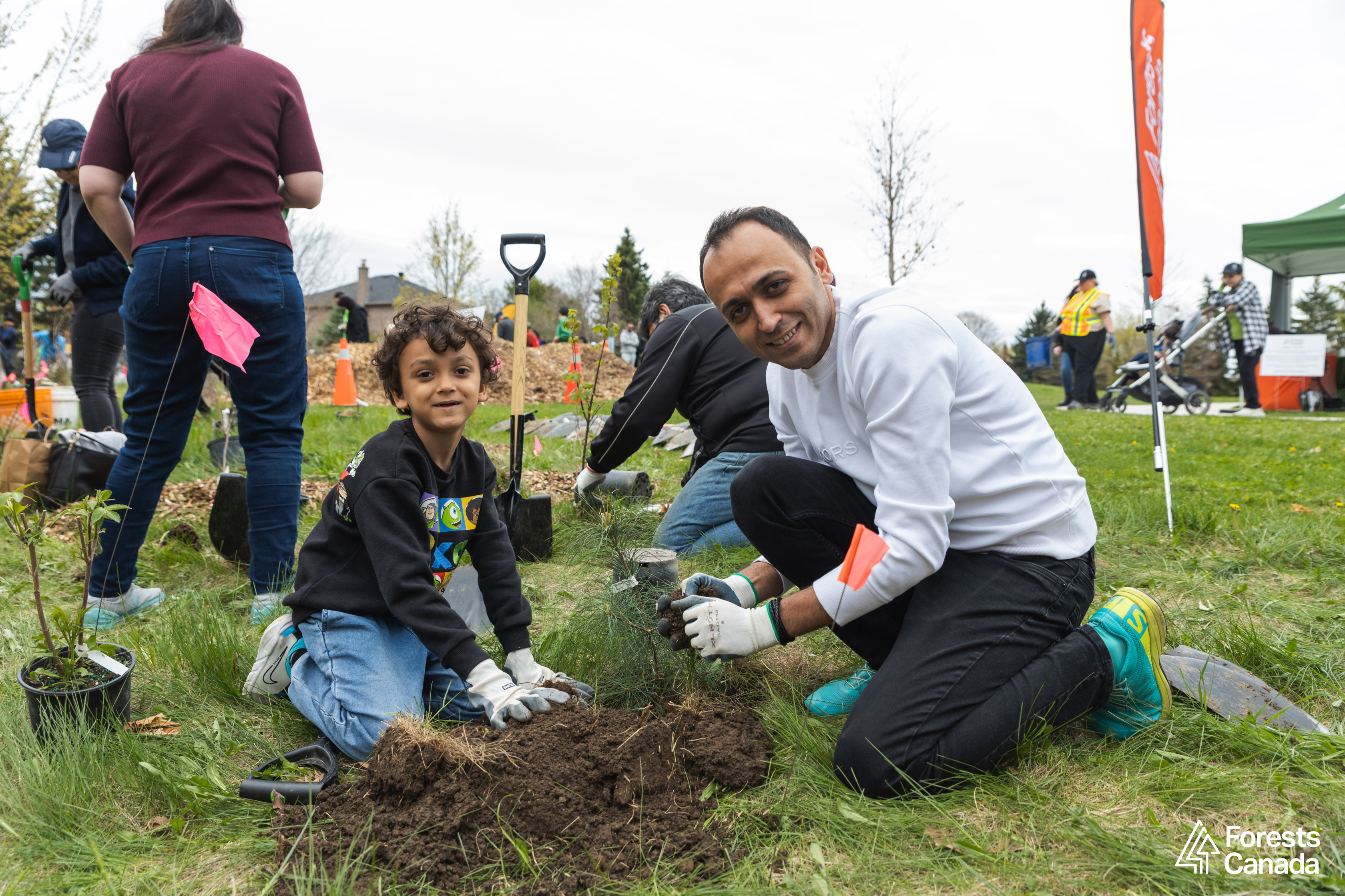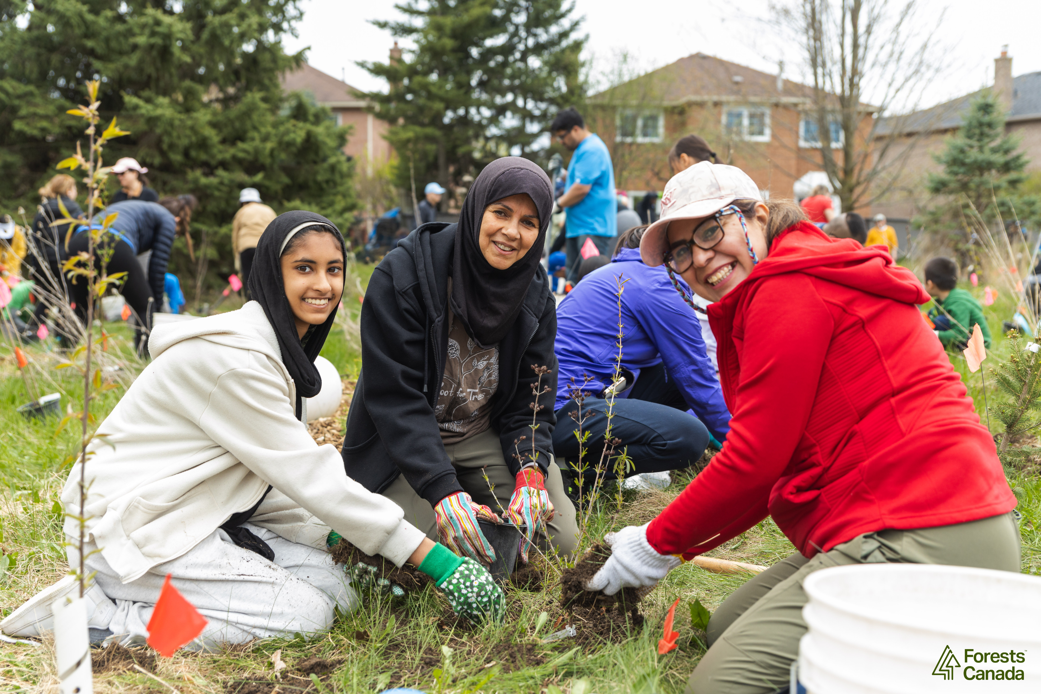 On May 4, 2025, over 150 volunteers from across the Greater Toronto Area and beyond gathered to plant 500 native trees and shrubs at Carrville Park in Richmond Hill, adding to the City’s growing urban forest. This Community Tree Plant event was a Forests Canada collaboration with LEAF, the City of Richmond Hill and York Region, and was made possible by the generous support of the RBC Foundation.